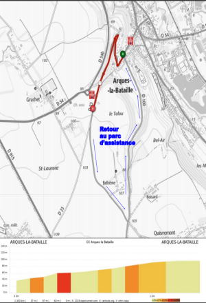 Un parcours de 1.450 km et une pente moyenne de 4% , avec un avantage important , celui de pouvoir regagner le parc assistance par une route annexe.